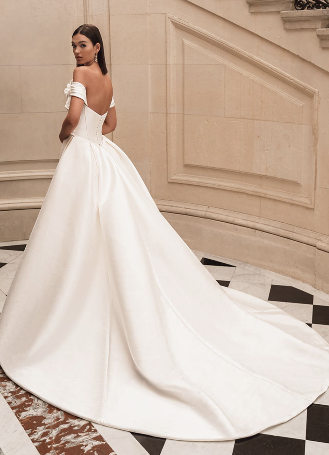 For brides who are loving the minimalist glam look, FLORENTINA is the perfect gown! This sheath gown with a jaw-dropping, detachable overskirt brings the drama with an artfully draped bodice with exquisitely textured, detachable off-shoulder floral straps and exposed corset boning for sleek, structured support. It is the perfect 3-in-1 look for your special day!