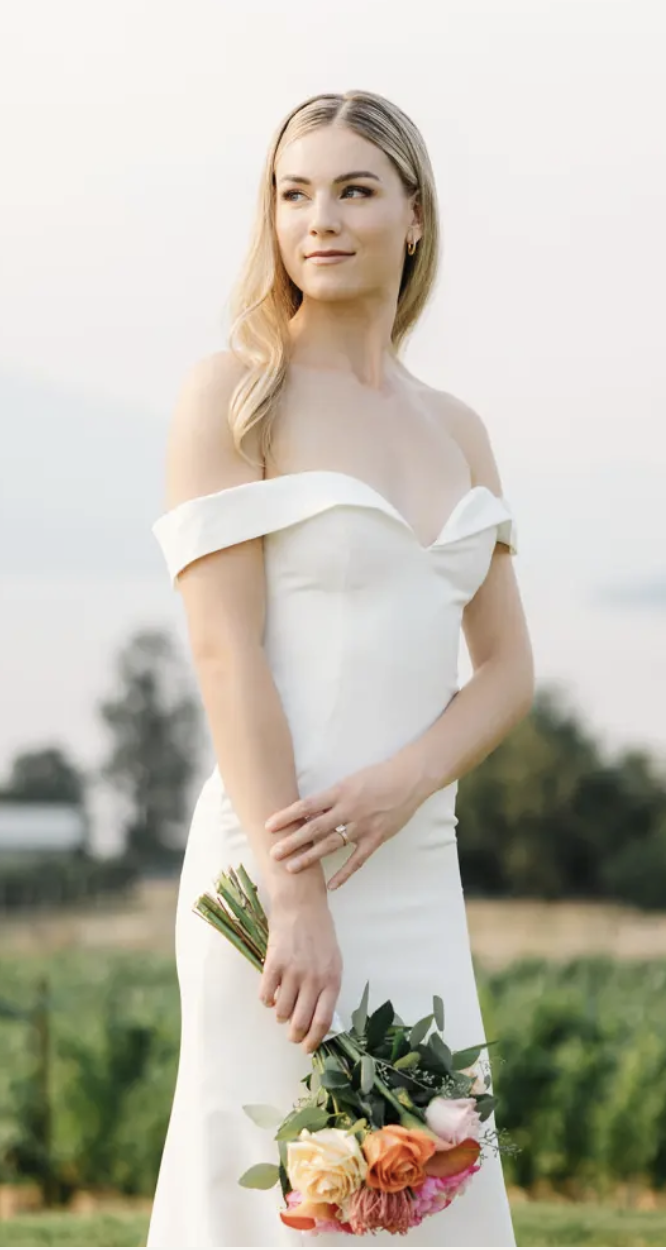 Laura is our exquisite crepe wedding dress, and a testament to modern elegance. Architectural seams sculpt a sleek and sophisticated silhouette, ensuring you stand out with understated beauty on your special day. This gown’s clean lines and refined craftsmanship make it the perfect choice for the modern bride who seeks timeless style and contemporary grace.