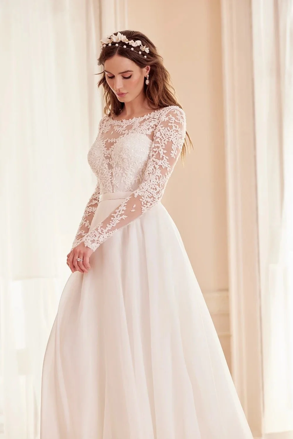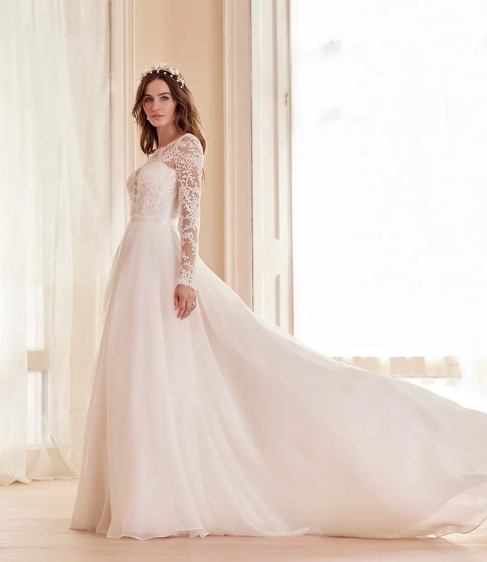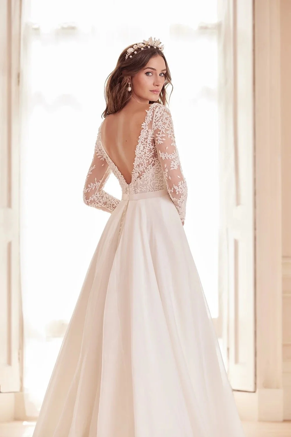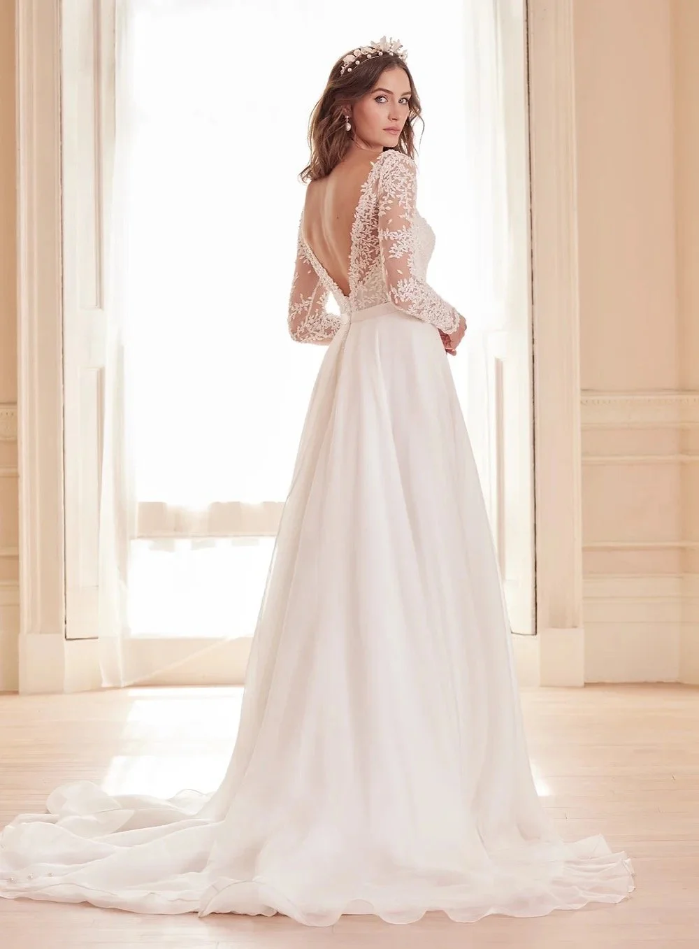 This gorgeous dress is made from luxurious silk organza, and features a beautifully embroidered lace bodice overlay, complemented perfectly by a delicate silk ribbon belt. The deep plunge back adds a touch of unexpected allure, making this gown perfect for the modern bride. Designed by Josephine Scot, Hetti is the ultimate choice for those seeking a truly unforgettable wedding day look.