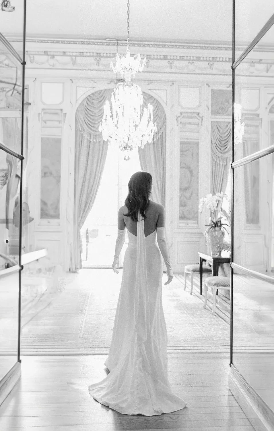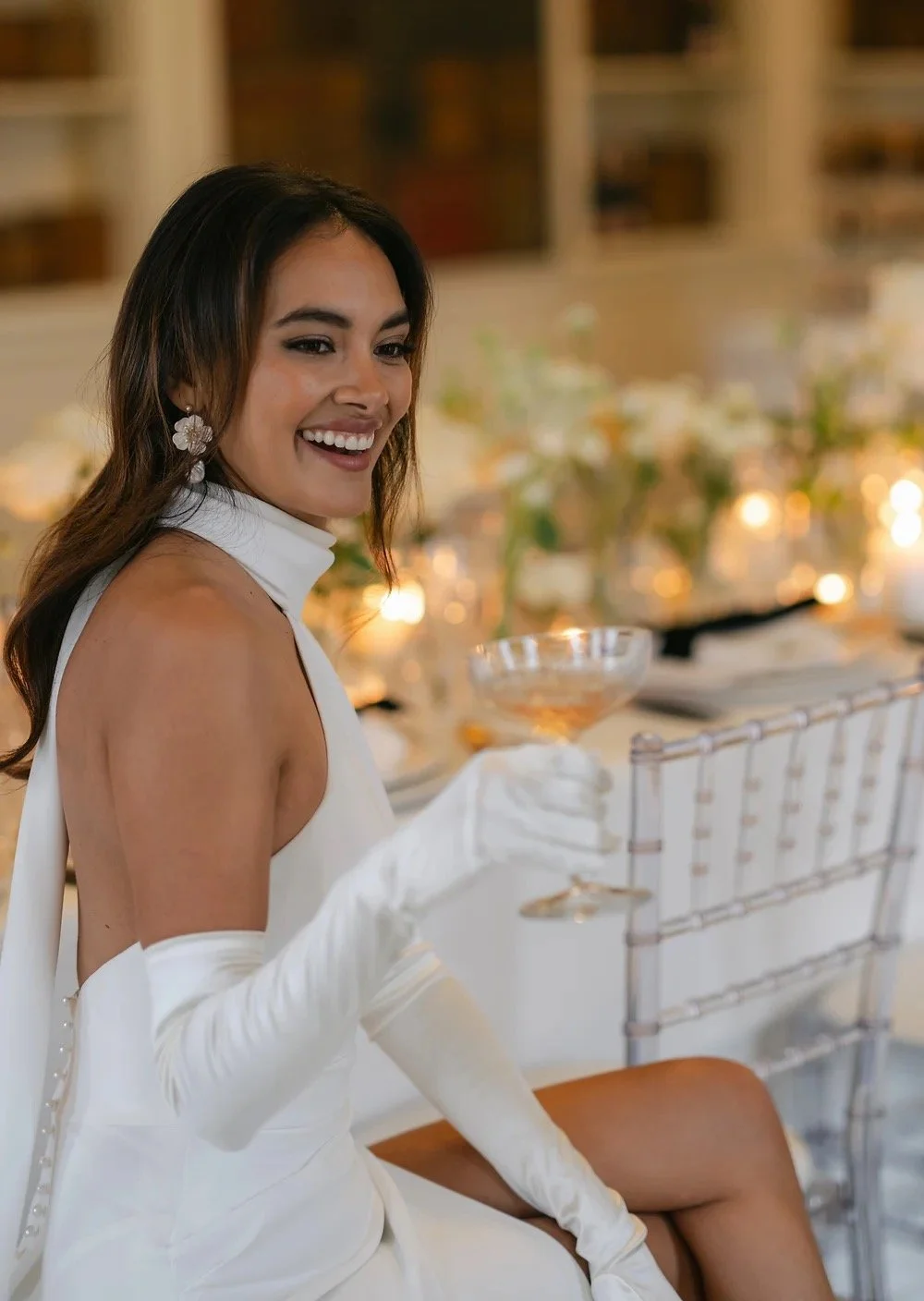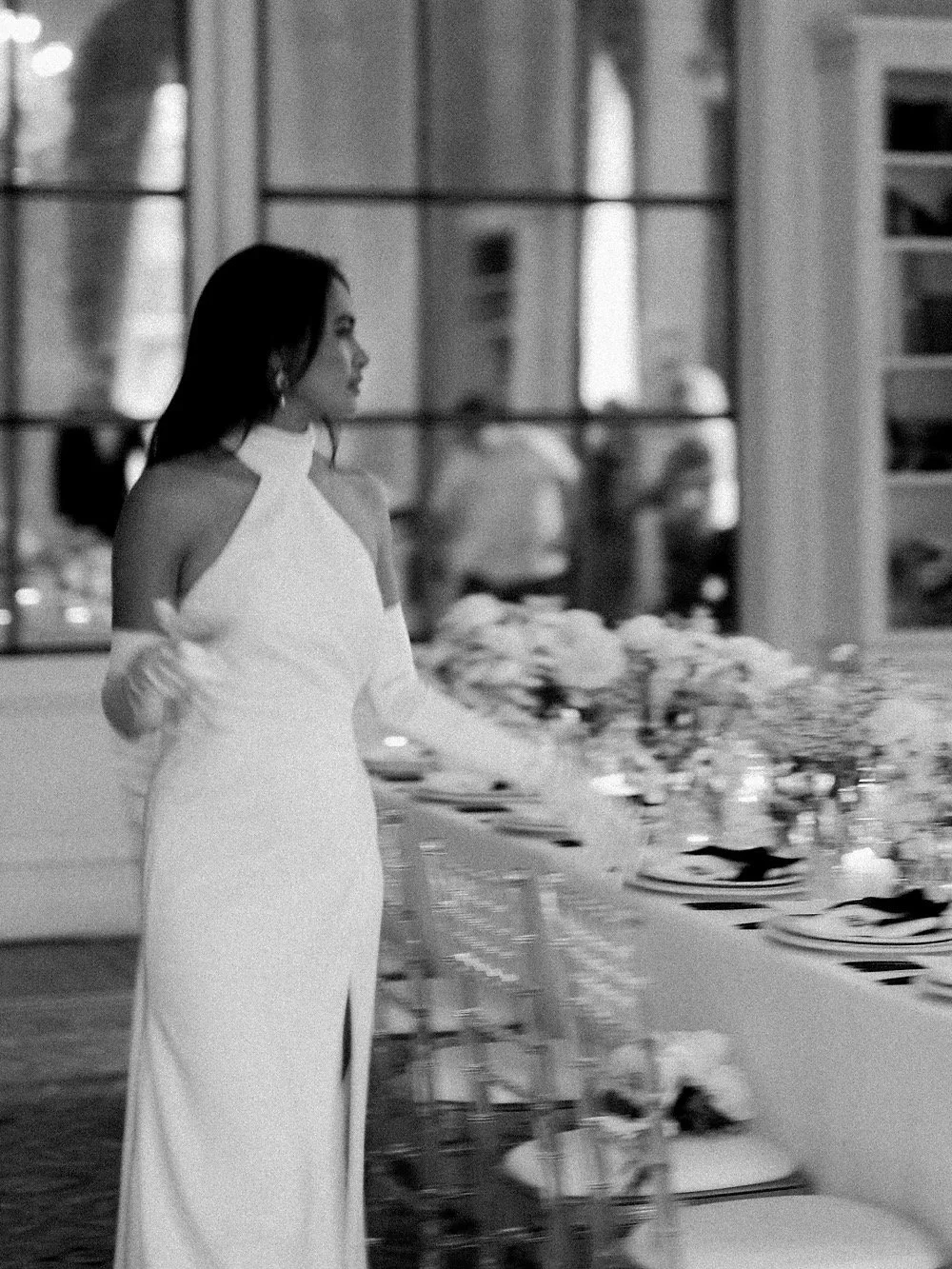Introducing the stunning TIFFANY gown, the perfect choice for the modern bride seeking sophisticated elegance. This chic satin crepe dress features a flattering high neck and pleats, highlighting your curves in all the right places. The thigh high split and low cut back add a touch of sexiness to this timeless design. Available in both Ivory and black, this gown is suitable for both daytime and evening weddings.