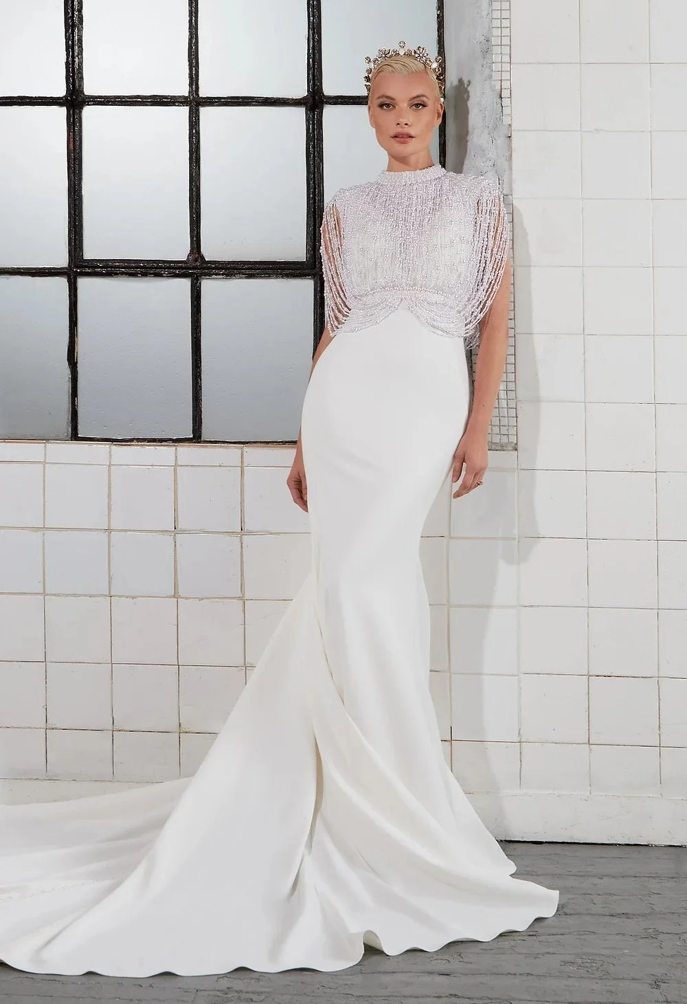 PARIS is the ultimate statement piece for any bride who wants to add an extra touch of elegance and glamour to her wedding day ensemble. With its beautiful hand-beaded pearls and crystals, this top is guaranteed to turn heads. Whether paired with our BLAKE gown or mixed and matched with our separates, PARIS will elevate your look to the next level.